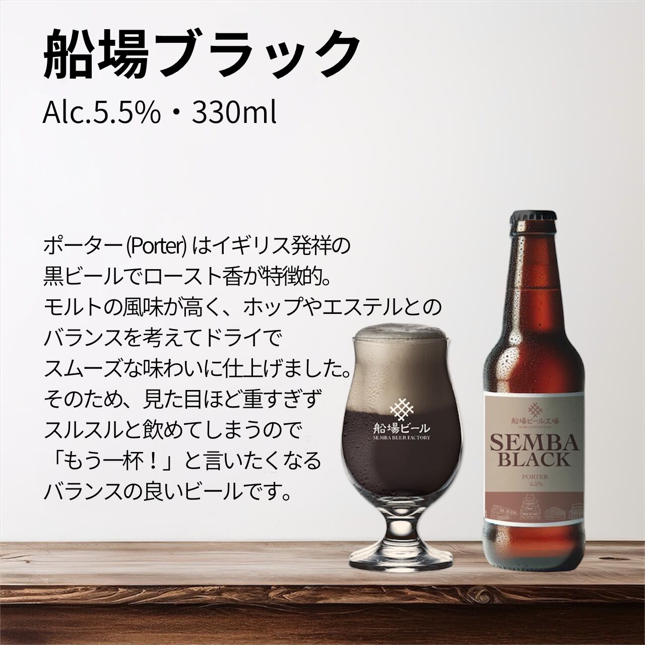 以前アニバーサリービールとして醸造した「The First」が好評でしたので「船場ブラック」として再度醸造しました!